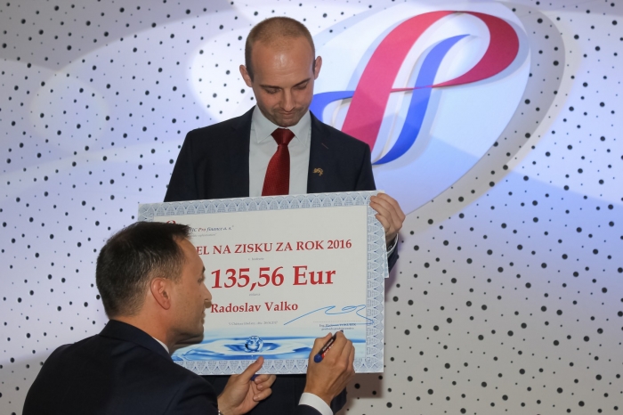 Najdôležitejším momentom celého večera bolo prerozdelenie „zisku“ spoločnosti. Spoločnosť SOPHISTIC Pro finance je okrem iného výnimočná aj v tom, že celý svoj „zisk“, ako jediná spoločnosť na slovenskom trhu prerozdeľuje medzi svojich spolupracovníkov. „Na Výročnom kongrese v roku 2016 sme prerozdelili zisk vo výške 30 192, 57 Eur. V tomto roku sme prerozdelili sumu 105 677, 81 Eur, čo je 3,5 násobok zisku minulého roku. Inými slovami 250% medziročný nárast zisku spoločnosti, ktorí sme rozdelili medzi ľudí!“ vysvetlil predseda predstavenstva Radovan Vokurek.