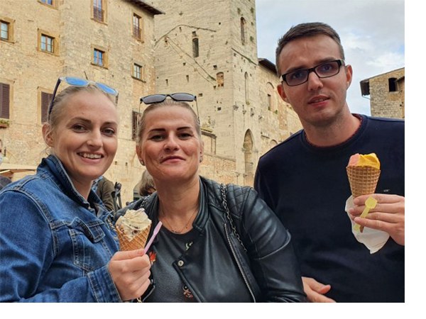 Takisto sme sa opýtali ako svoj prvý zahraničný pobyt s SPF hodnotí aj Pavol Hreus, spolupracovník v pozícií Špecialista I.: „Vlastne áno. Bola to moja prvá dovolenka. Úprimne, ani som si to neuvedomoval, keďže som už zažil mnoho skvelých akcií v tejto firme. Ale táto bola priam fantastická. Vyhral som ju v súťaži Radka Valka. Históriu mám veľmi rád a aj pamiatky. A talianský zvyk - všetko jedlo zapíjať vínom? Toskánsko je raj na zemi! Navyše, v prvý deň dovolenky som oslavoval narodeniny a lepší darček som si ani nemohol priať. Ďakujem, že som ich mohol osláviť tu a v kruhu týchto skvelých ľudí. Odnášam si nezabudnuteľné zážitky. Či už zo 400 ročnej vily v okolí Florencie, kde sme boli ubytovaní. Rozprávkovú atmosféru zo San Gimignana. Mestečko ako stvorené na romantické prechádzky pri západe slnka. Z ochutnávky hovädzích steakov mám ešte dnes plné brucho. Skrátka, bolo to 5 dní plných zážitkov, na ktoré budem do konca života spomínať,“ hovorí Pali.